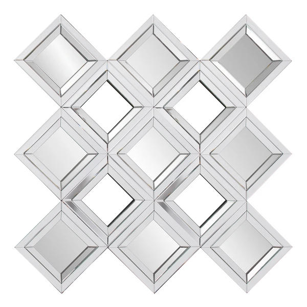 Featuring faceted, diamond-shape mirrors arranged in a windowpane style, this mirror makes a striking focal point in any room. D-rings are affixed to the back of the mirror so it is ready to hang in a square or diamond orientation.