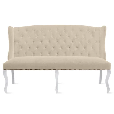 For those who love a luxe seating companion, look no further than our Archer with its nailhead trim, curvaceous legs, and tufted, structured look. Shown in Maxwell Linen Alpaca with antique brass nailheads.