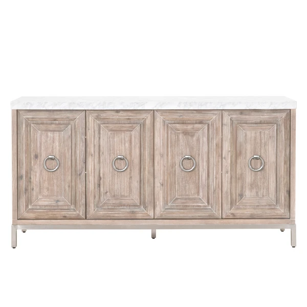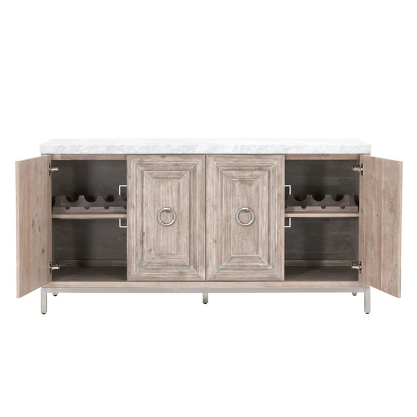 Our beautiful Bedford Buffet features a natural grey painted finish paired with a Carrera marble top. It proves that function can be glamourous.