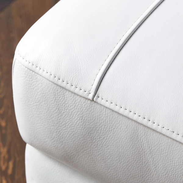 With its top-grain, semi-aniline leather upholstery, polished stainless-steel legs, and streamlined silhouette, this two-piece sectional brings modern elegance to the sitting room, while its powered reclining end seat, adjustable headrests, and ample padding ensure it’s as comfortable as it is stylish. A convenient USB port located in the control panel lets you charge up your devices while you lounge.