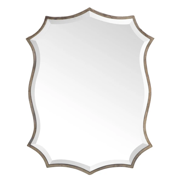 Sophisticated and refined, our Brooke Mirror layers your wall with reflective luxe and decorative distinction. Curvilinear details meet with angular edges in our Brooke Mirror, creating graphic play and visual interest. Elevating the design, edge detailing has been nickel plated with an oxidized finish, adding depth and refinement to the stunning piece. For ease of use, our Brooke Mirror comes equipped with D rings for vertical or horizontal hanging.