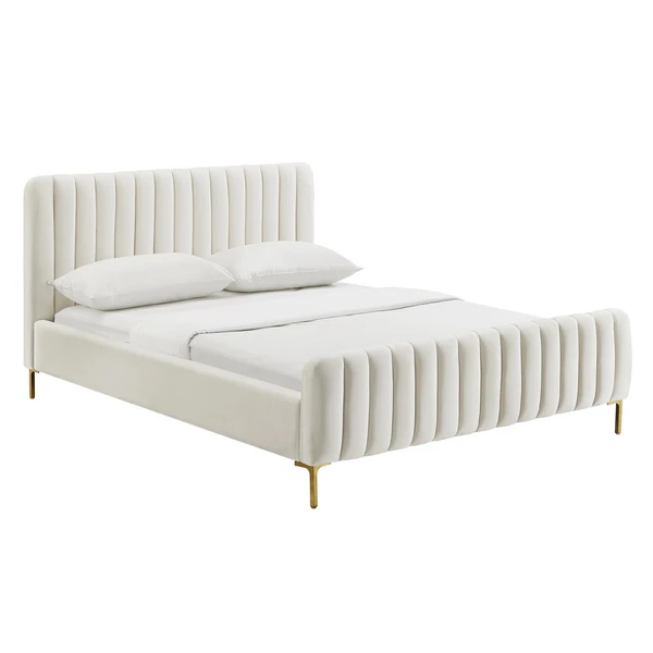 A modern take on a classic silhouette, our Catalina bed features clean-lined channeling, sumptuous velvet upholstery, and polished gold legs.