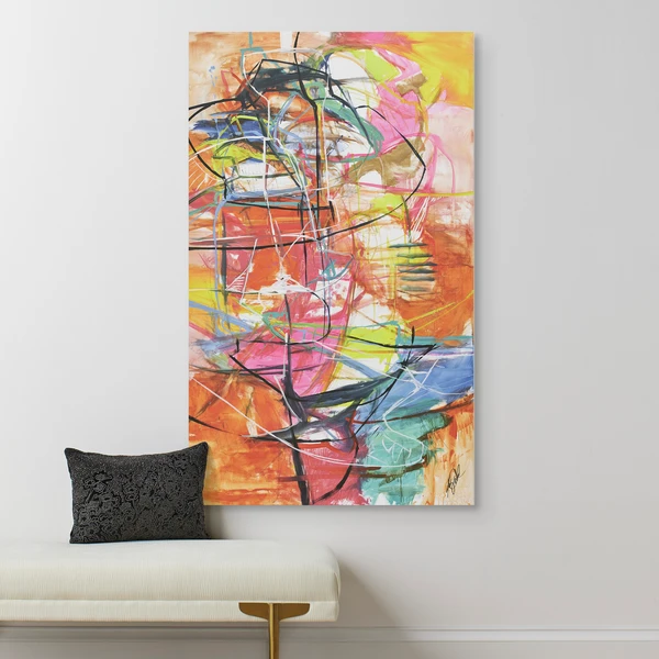 Printed on canvas with a hand-applied textural finish, this modern abstraction from artist Kelly O’Neal enlivens any wall with its bold brushstrokes and vibrant palette.