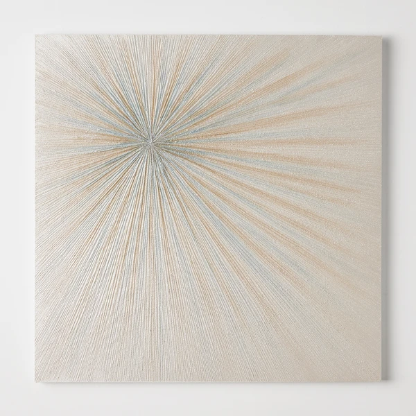 Bold, metallic brushstrokes form an eye-catching sunburst in this original work by artist Beverly Fuller, while glitter embellishments add a hint of sparkle.