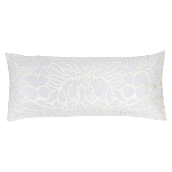 A stylish accent for the sofa or bed, this lumbar pillow is crafted of cotton chambray and embroidered with a free-flowing abstract design.