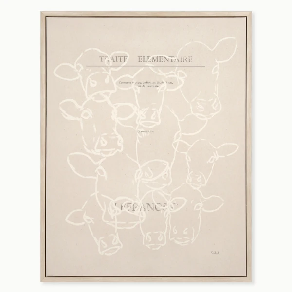Cowgirls is a gallery-wrapped natural linen canvas set in a blonde wood tone floater frame.