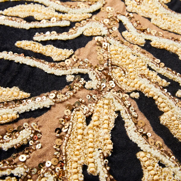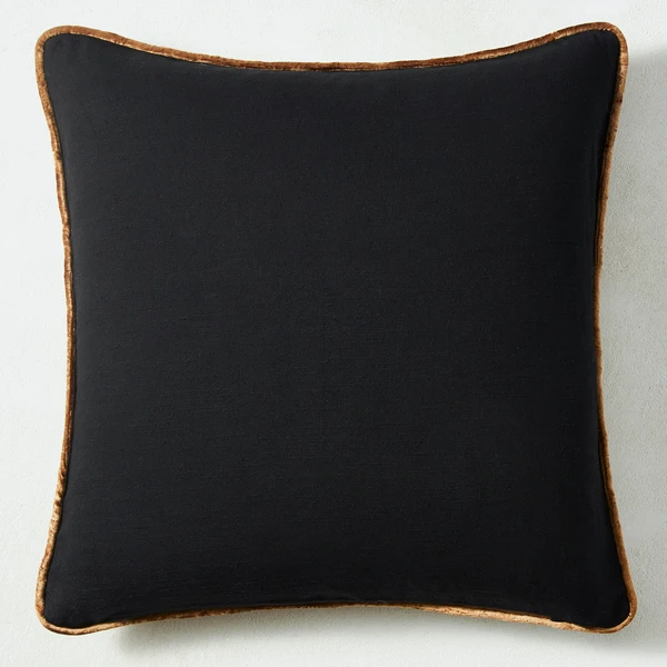 Add a pop of pattern to any sofa, bed, or chair with this pillow, made of velvet with a tiger-stripe design, shimmering sequin and bead embellishments, and gold piping. Solid back. Insert included.
