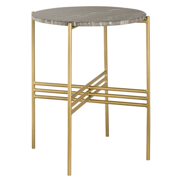 Chic and modern, this side table pairs an expressive marble top with geometric framework finished in gold.