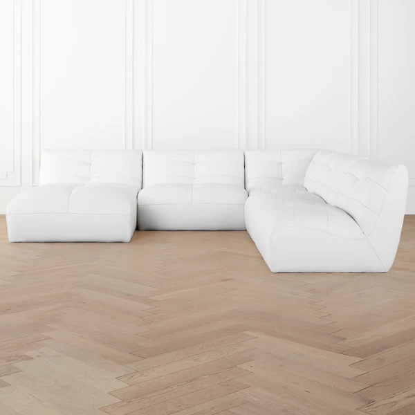 Introducing our modern and versatile Emmett Modular Sectional, designed to elevate your living space with its sleek and contemporary style. Crafted from top grain leather in a white hue, this sectional exudes luxury and sophistication.