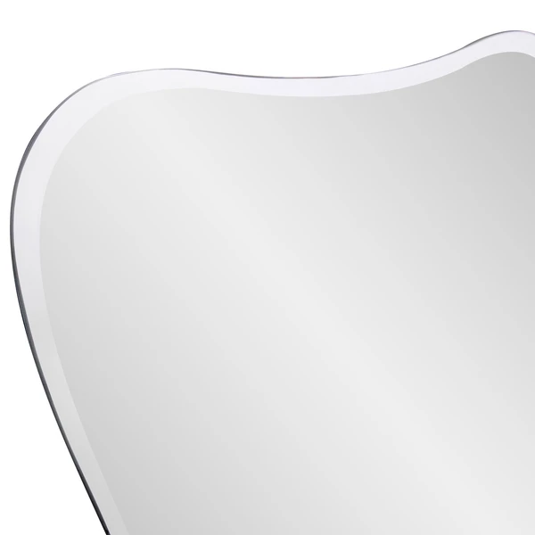This frameless mirror is just that: all mirror – no frame! The shape of the glass is flared with rounded corners. It is beveled enhancing its simplistic beauty and style. It’s sleek style makes this mirror a favorite for bringing some flair to your decor. This simple yet stunning piece would be a great addition to any room. It is a perfect focal point for an entryway, bathroom, bedroom or any room in your home.