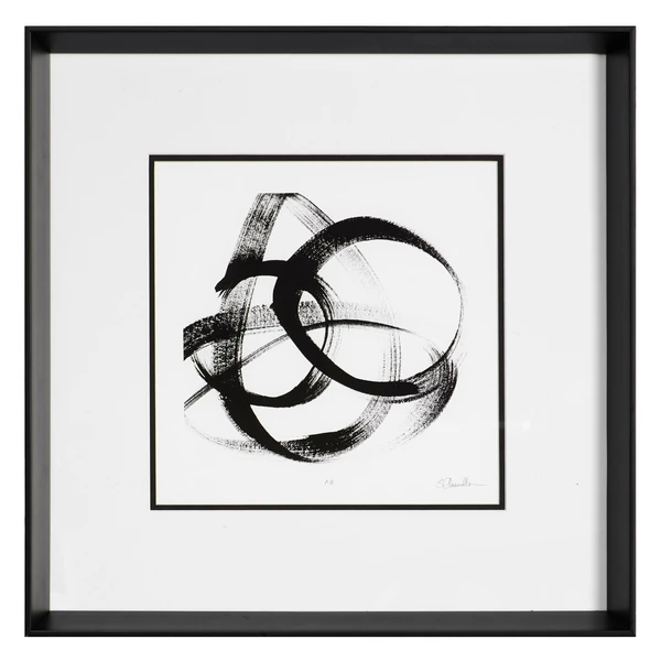 Striking in black and white, this limited-edition abstraction from artist Sharon Chandler is set off with a white mat and displayed in a black frame.
