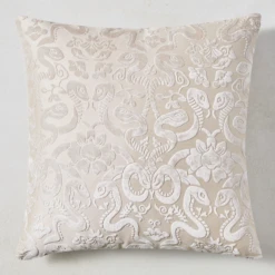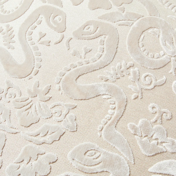 An intriguing snake-and-flower design pops on this cut-velvet pillow, making it a stunning accent for any sofa, bed, or chair. Insert included.