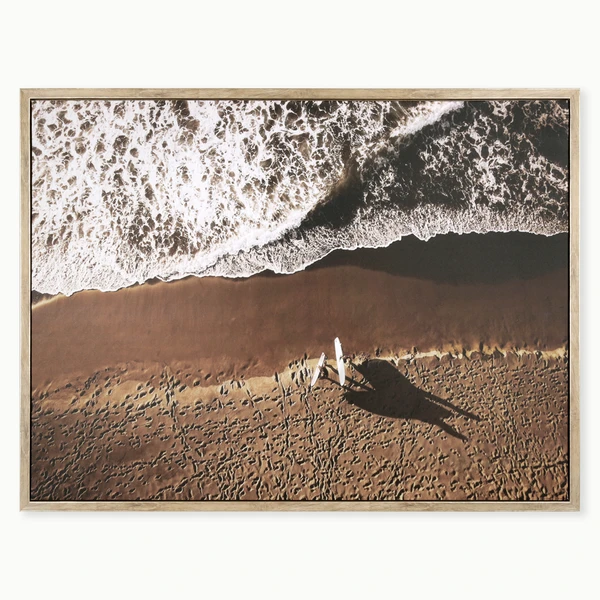 Gold Coast is a gallery-wrapped canvas set in a natural wood tone floater frame with champagne edges.