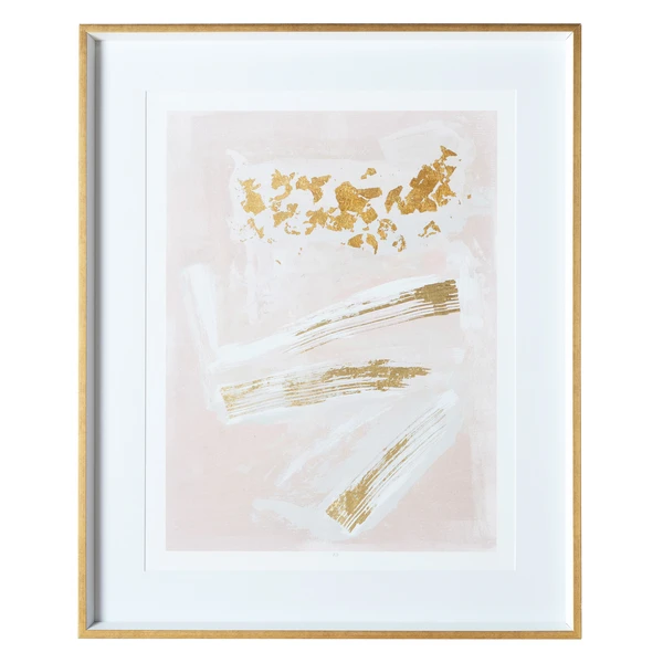This limited-edition abstraction from artist Jennifer Parker offers a captivating modern study of color and form. Printed on fine-art paper with hand-applied gold and white paint embellishments, this piece is matted and displayed in a gold-and-white frame. Each print is plate signed and hand-numbered.