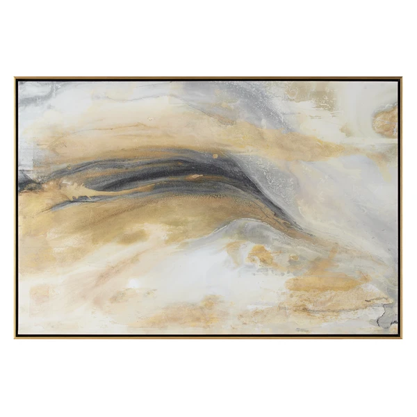 This work from artist D’Alessandro Léon enlivens any wall with its fluid, abstract composition and hand-applied gold embellishments. Printed on canvas with an image brush gel finish for added texture, this piece is displayed in a gold floater frame.