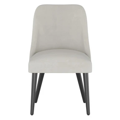 The simple silhouette of the Jessa chair allows it to sit with any table. Available in multiple fabrics to customize the look of your space. Shown in Velvet Light Grey.