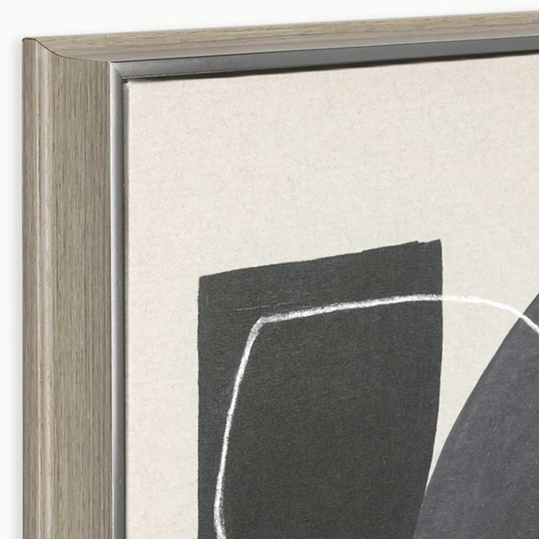 Joined is a gallery-wrapped canvas set in a blonde and pewter (2-tone) scooped floater frame. Set of 2.