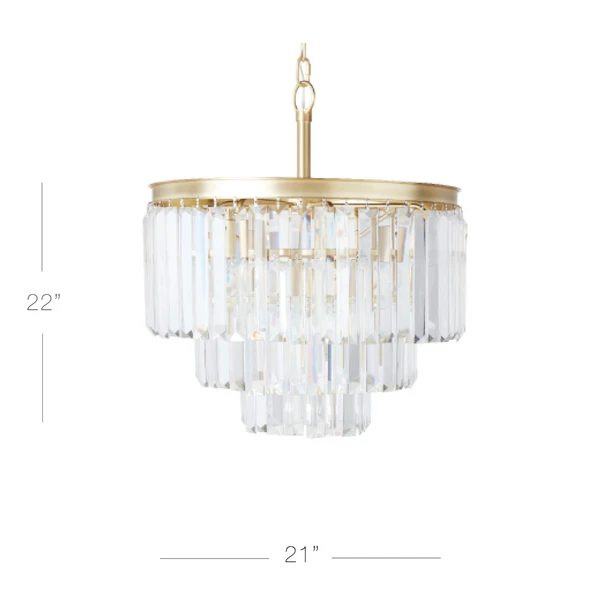 With its metallic finish, our Luxe Lighting Collection provides an elegant solution for coordinating a space. The Chandelier is embellished with three tiers of faceted crystals for overhead glamour.