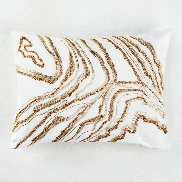 What could be more classic in your decor than marble? Give your space an easy update with this ivory Marble Marvel lumbar pillow with velvet front and bugle bead detailing.