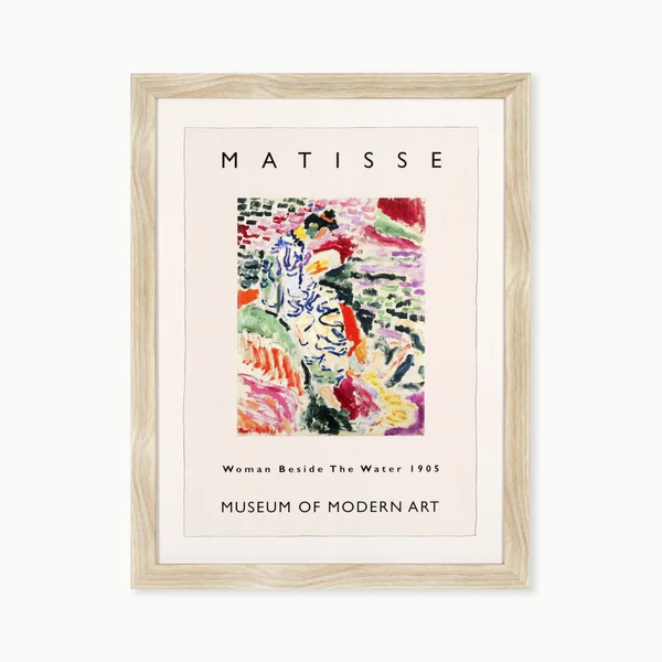 Matisse Woman is a framed graphic under glass with a blonde textured molding frame.