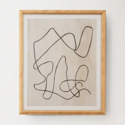 Our Maze art series features abstract ink scribbles on a cream background with white border and a simple natural wood frame.