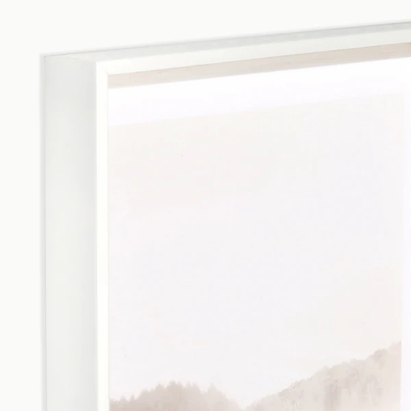 Misty Morning is a framed graphic under glass with a white angled profile frame.