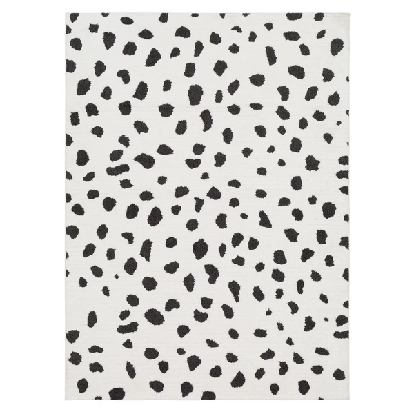 Featuring a leopard-spot pattern in black and white, this Moroccan shag rug is ideal for adding bold pattern and soft style to any space.