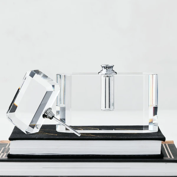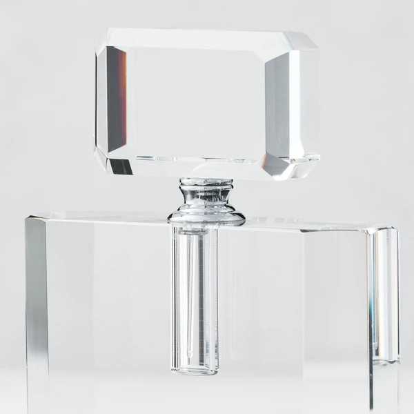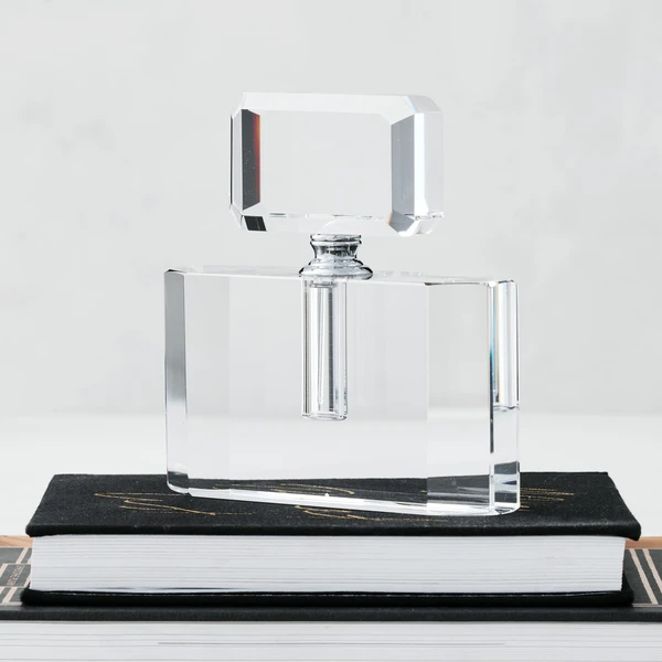 Channel your inner glam with our Natalie Perfume Bottle. Our vintage design is crafted of beveled crystal with an elegant removable stopper and silver fittings. Place on your vanity, or on a special tray with your favorite trinkets for an elegant display.