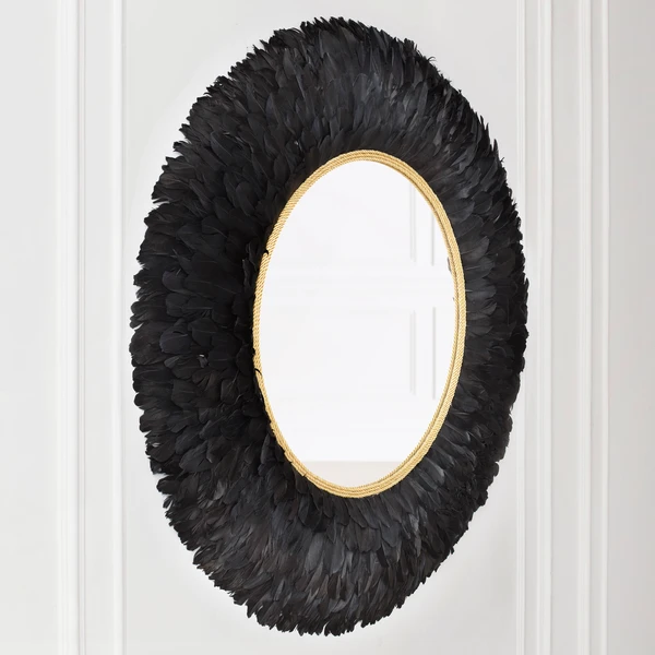 Perfect for adding texture and drama to your wall, this mirror’s frame is embellished with lush feathers and finished with a gleaming gold inner border.