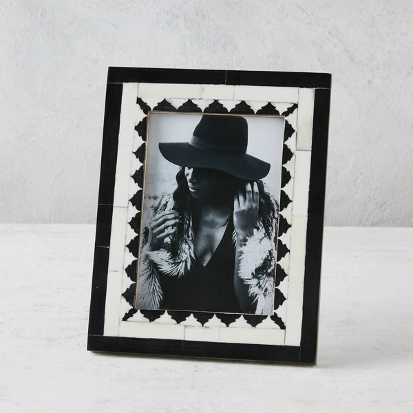 Featuring a mosaic pattern of black and white tiles, this picture frame is a stylish option for displaying your favorite photo. Pair with our Ollie Frame for double the impact.