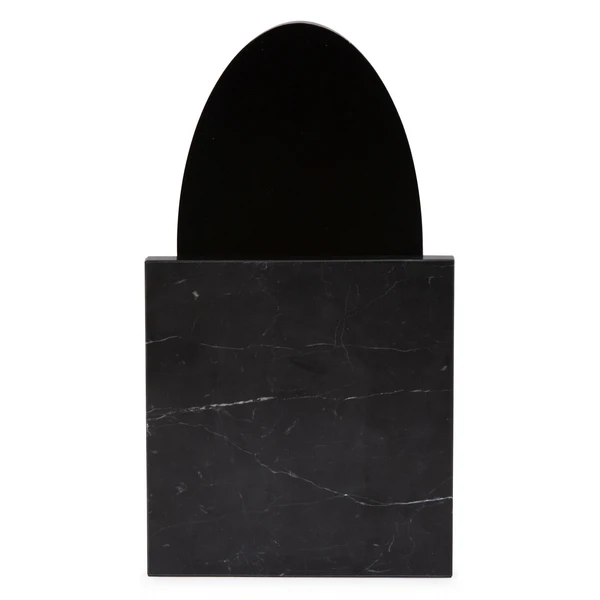 Mirrors provide the perfect accent for a book shelf or a table. They reflect the light and color of a room, offering a little window into oneself. The Orson Mirror features a black marble base that an oval mirror is set into.