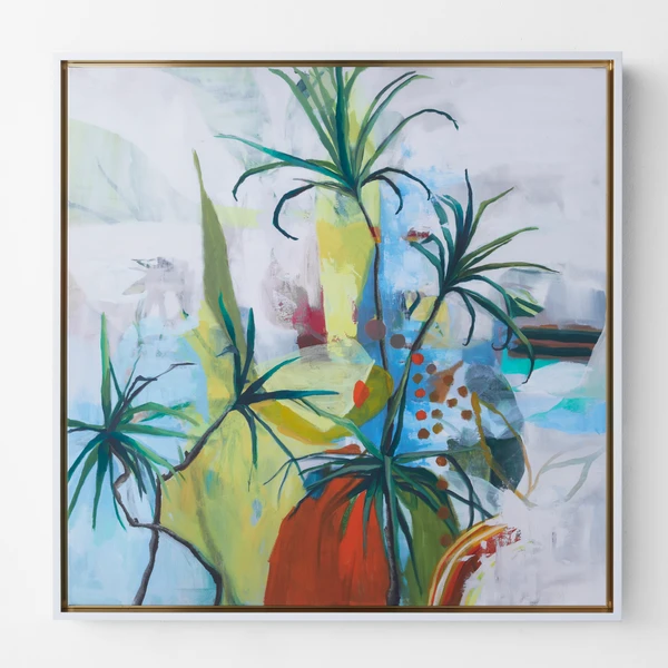 Does your home need a pick-me-up? Brighten any room with this piece entitled Plant Cheer. Created using giclee on canvas, it features a hand-applied image brush gel finish and is set in a white floater frame.