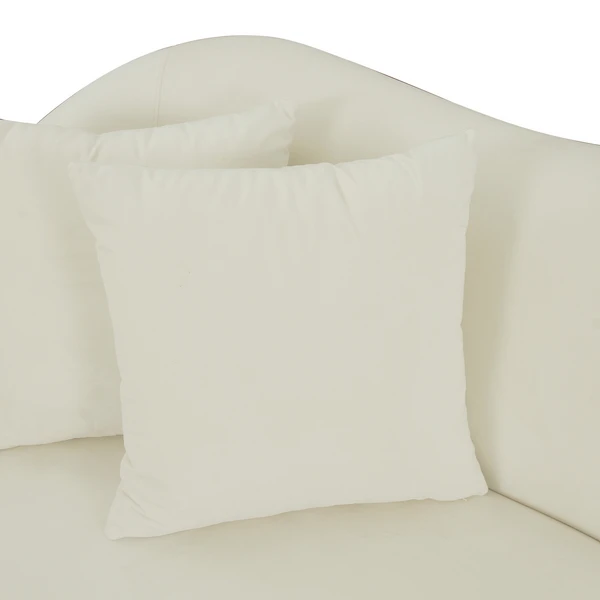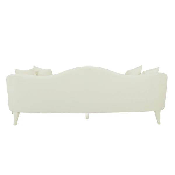 Timelessly elegant, this sofa is framed in kiln-dried wood frame with a graceful silhouette, camel back, and plush velvet upholstery. Fiber-wrapped foam fill and four throw pillows offer long-lasting comfort and support.