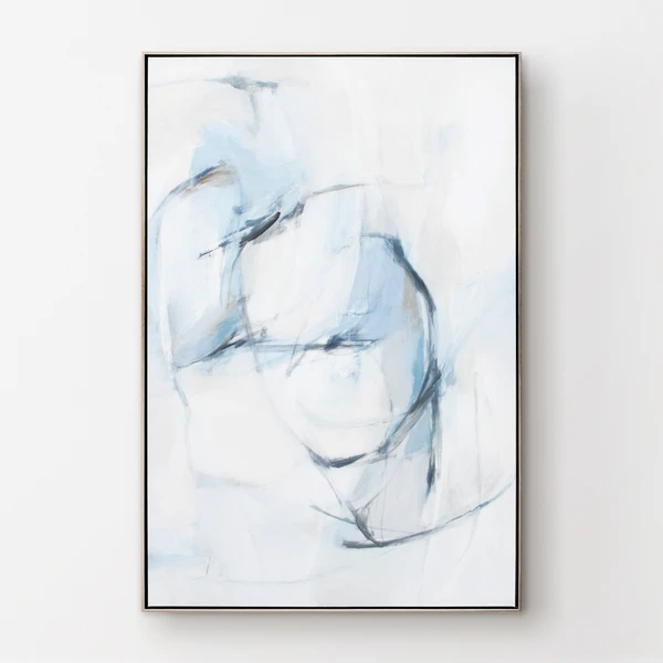 Featuring bold brushstrokes in a cool blue palette, this abstraction from artist Giselle Kelly is ideal for adding a modern note to your wall. Printed on canvas with an image brush gel finish for added texture, this piece is set off with a silver floater frame.
