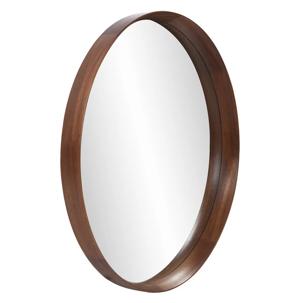 The deep, shadow box styled frame of our Reagan Wall Mirror is styled to let the beautiful characteristics of the Wau Beech wood take center stage. The mirrored glass is set in deep into the round frame that is finished in a rich reddish brown stain. D-rings are affixed to the back of the mirror so it is ready to hang right out of the box.