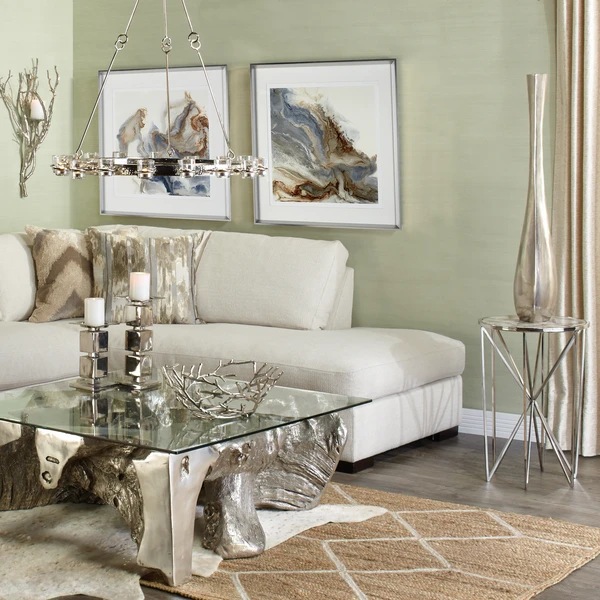 Our sleek and slender Revive Vase is designed exclusively for Z Gallerie to add a spark of shiny silver to a room, with a unique contemporary silhouette. The lean three-sided vase is crafted of aluminum with a shiny hand-brushed nickel finish.