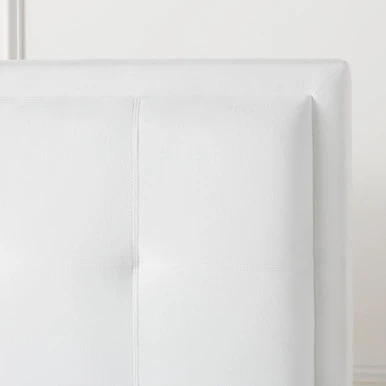 Classic styling meets a modern line. Riley brings gracious charm to any bedroom with a bright, crisp frame resting on contrasting legs. Shown in Bella Velvet White.