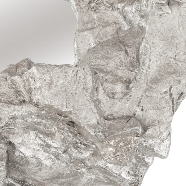 Although the asymmetrical frame of this standout mirror resembles molten rock, it is actually made from lightweight composite and topped with a gleaming silver-leaf finish for a luxe finishing touch.