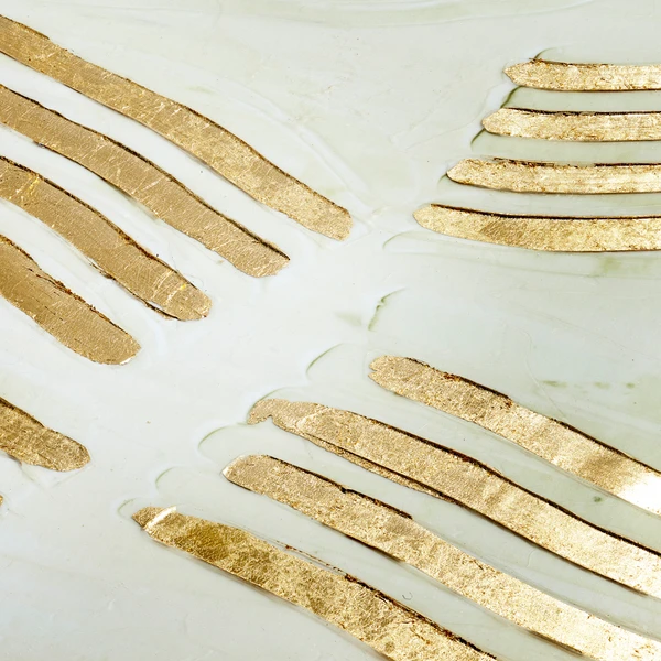 - Hand-applied gold-leaf paint and matte gel texture embellishments