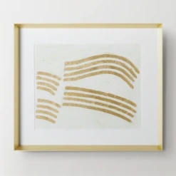 Full of energy and movement, this work from artist Melissa Wang is embellished with gold-leaf paint and a matte gel finish for gorgeous texture and shine. Printed on paper, this piece is matted and displayed under glass in a solid wood frame with a gold finish.