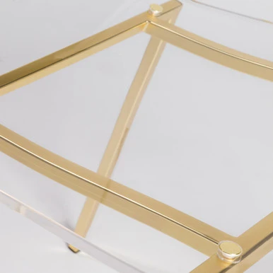 Sleek and modern, this pair of dining chairs flaunt beautifully contoured clear acrylic seats atop clean-lined steel frames finished in matte, brushed gold.