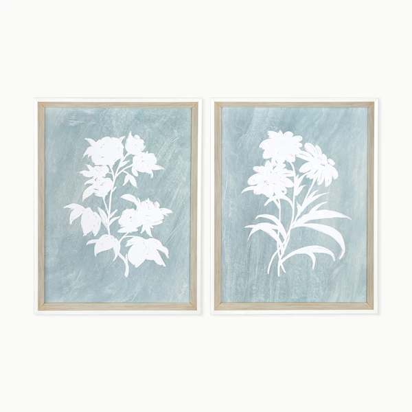 Sage is a framed graphics under glass with white angled profile frames. Set of 2.