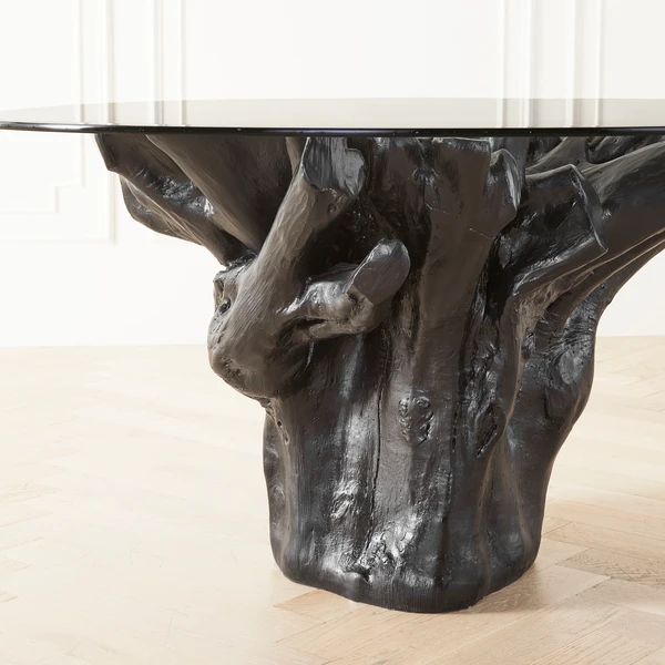 Invite natural looking elements into your home with our Sequoia Dining Table. Carefully cast from the roots of an Acacia tree, our Sequoia Dining Table brings sculptural detailing to its surrounding décor. Molded out of resin in a multi-step process, our Sequoia Dining Table is finished with real polished stone fragments and artisan grade resin resulting in a durable refined coating. A sixty inch round glass table top completes the table, allowing for easy viewing of the stunning organic display below.