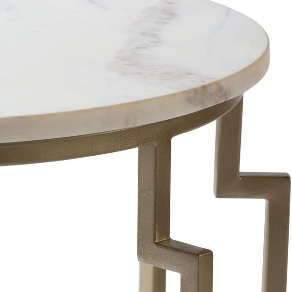 Our Servan accent table pairs a champagne finish with a marble top to add a touch of glamour to any space.