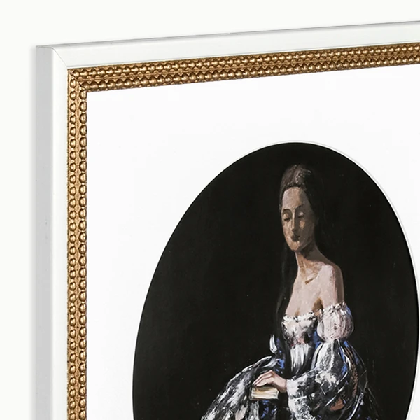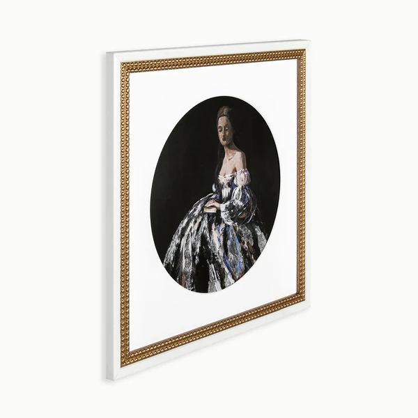 Sitting Pretty is a framed graphic under glass with a double beaded gold frame.