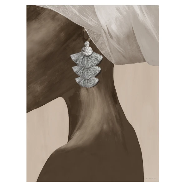 Soft feminine lines create an elegant side profile of a beautiful African American woman wearing a headscarf and three-tier earring.