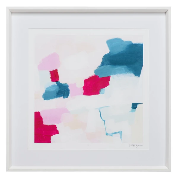 A beautiful blend of color and form, this limited-edition abstraction from artist Victoria Borges is printed on archival paper, matted, and displayed in a white frame.