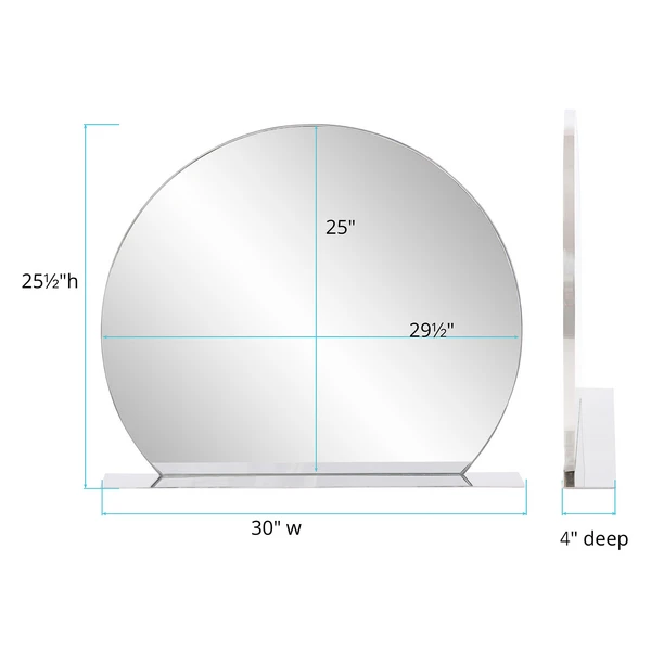 Combining sleek design with functionality, this mirror features a modern polished stainless steel frame with a built-in shelf. D-rings are affixed to the back of the mirror and ready to hang.