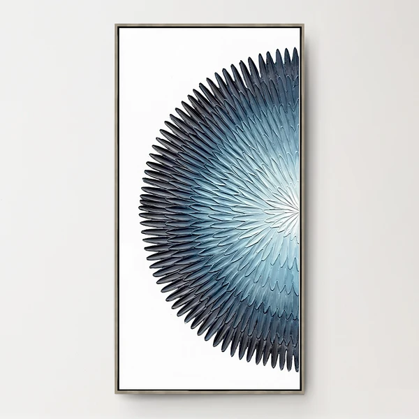 - 100% hand painted canvas set in a silver floater frame.