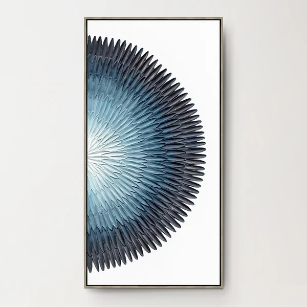 Forget your troubles, come on get happy. This hand-painted canvas makes the blues beautiful. Set in a silver floater frame, it can be hung vertically or horizontally. Complete the look with Troubles I.